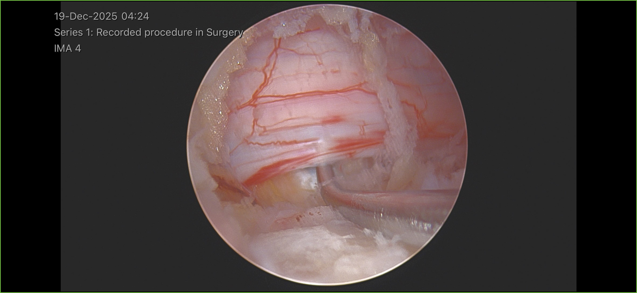 Using specialized micro-instruments through the instrument portal, Dr. Kazarian carefully removes the herniated disc fragment, bone spur, or thickened ligament that is compressing the spinal nerve while viewing the entire procedure through the camera portal. If a laminectomy is needed, a small portion of the lamina bone is precisely removed to widen the spinal canal. The high-definition endoscopic camera provides real-time visualization so Dr. Kazarian can protect the nerve root and surrounding structures with exceptional accuracy. The entire process typically takes 45 to 90 minutes.